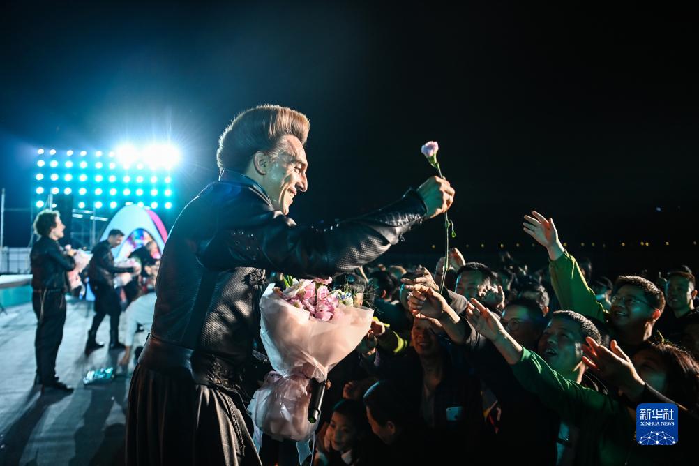 10月16日,在西安大明宮國家遺址公園,來(lái)自塞爾維亞的飛龍和巴爾干城邦樂(lè )團與觀(guān)眾互動(dòng)。