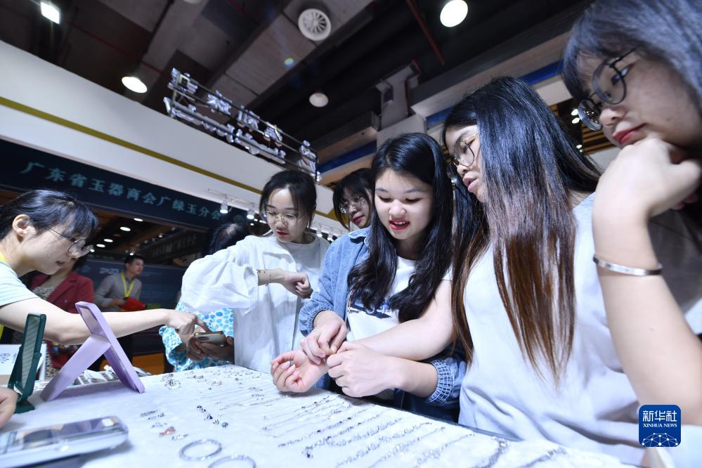 10月18日,觀(guān)眾在珠寶展上選購商品。