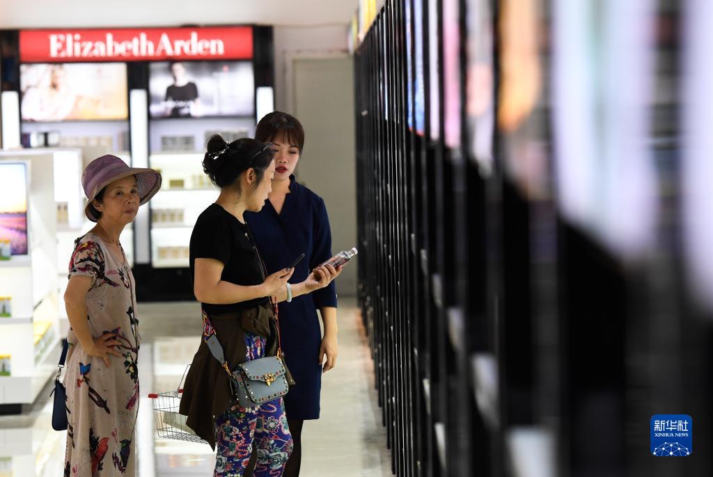 游客在海南博鰲免稅店選購商品(2019年4月20日攝)。