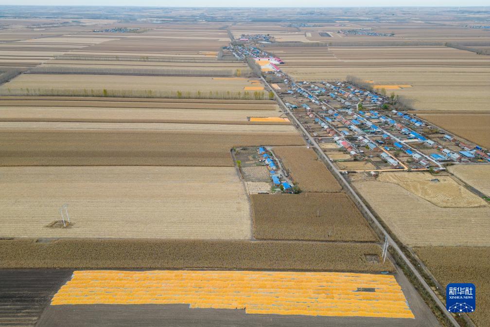這是10月18日拍攝的黑龍江省綏化市北林區張維鎮潤地農業(yè)種植合作社的晾曬場(chǎng)(無(wú)人機照片)。