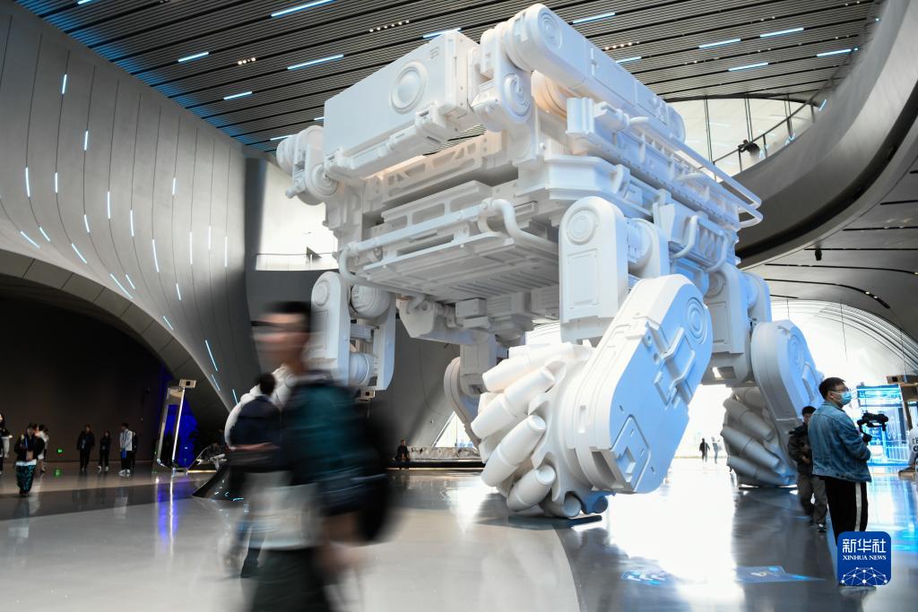 這是10月18日在2023成都世界科幻大會(huì )主題展覽上拍攝的巨型雕塑。