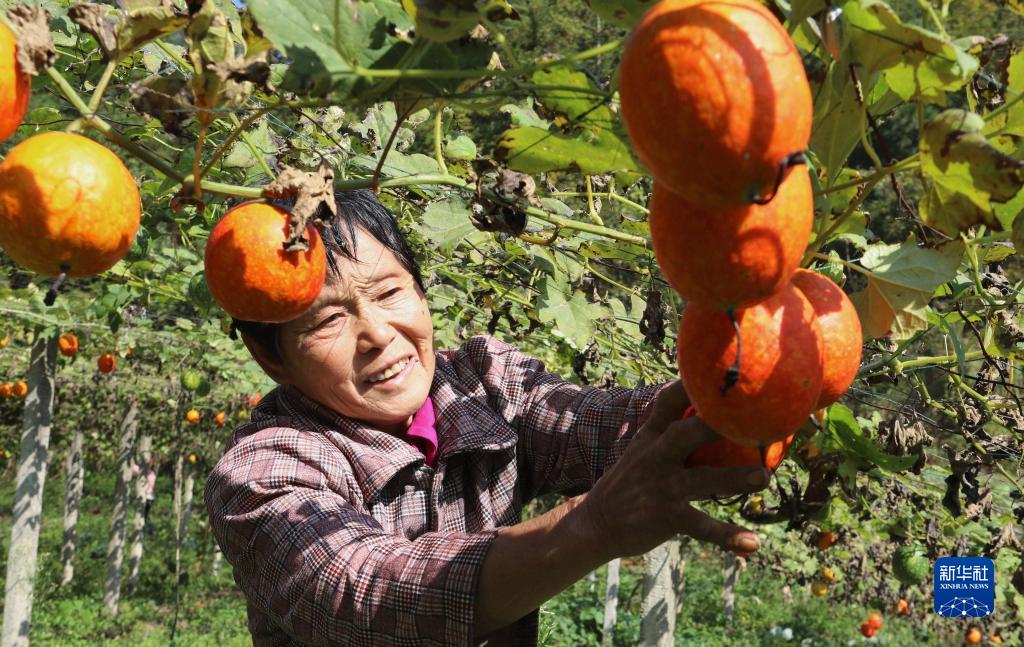 10月21日,村民在貴州省黔東南苗族侗族自治州施秉縣城關(guān)鎮新紅村收獲吊瓜。