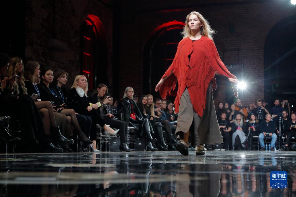 10月21日,模特在俄羅斯首都莫斯科舉行的伏爾加時(shí)裝周上展示時(shí)裝。