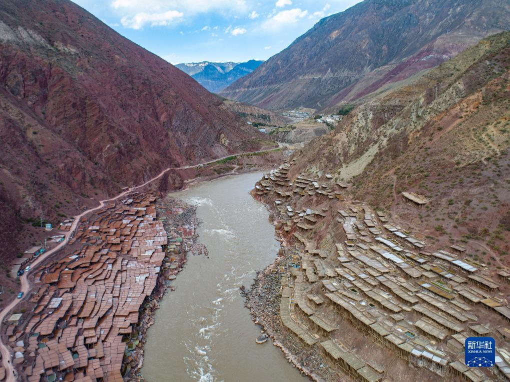 西藏昌都市芒康縣納西民族鄉位于瀾滄江畔,當地從唐代開(kāi)始制鹽,距今已延續1300余年。鹽田在瀾滄江兩岸依山而建,由多根木柱搭架,架上用透水性強的泥土鋪成平面夯實(shí)。當地村民仍保持著(zhù)原始的手工曬鹽方式,他們從瀾滄江畔的鹽井、鹽池中取出鹵水倒入鹽田,經(jīng)陽(yáng)光蒸曬、風(fēng)干,結晶成鹽。遠遠望去,鹽田錯落有致,景色奇美。