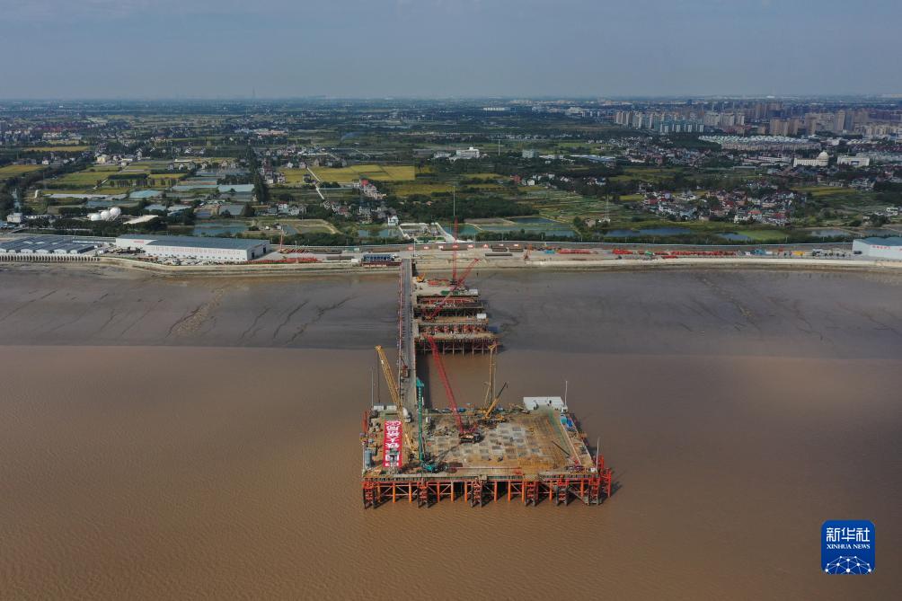 當日,杭州灣跨海鐵路橋首個(gè)主塔墩樁基施工完成,大橋建設取得階段性進(jìn)展。