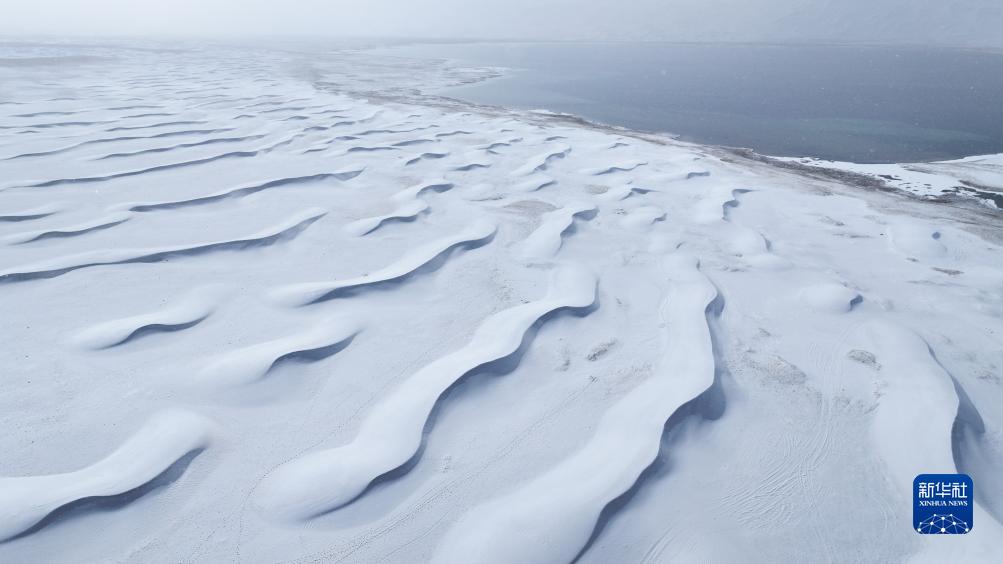 10月16日在阿爾金山國家級自然保護區拍攝的白雪覆蓋的庫木庫里沙漠(無(wú)人機照片)。