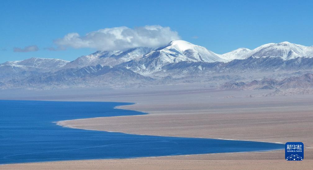 阿爾金山國家級自然保護區的阿雅克庫木湖與雪山(10月18日攝,無(wú)人機照片)。