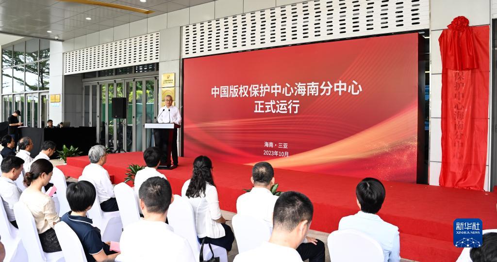 這是10月23日拍攝的中國版權保護中心海南分中心揭牌儀式。