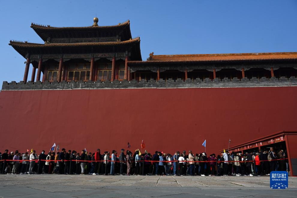 10月24日上午,觀(guān)眾在午門(mén)廣場(chǎng)排隊等候進(jìn)入故宮。