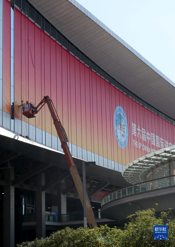 位于上海青浦的國家會(huì )展中心(上海)場(chǎng)館外部進(jìn)博會(huì )主題裝飾工程目前已進(jìn)入收尾階段,包括南廣場(chǎng)在內的四個(gè)出入口都已裝飾一新,迎接即將開(kāi)幕的第六屆中國國際進(jìn)口博覽會(huì )。