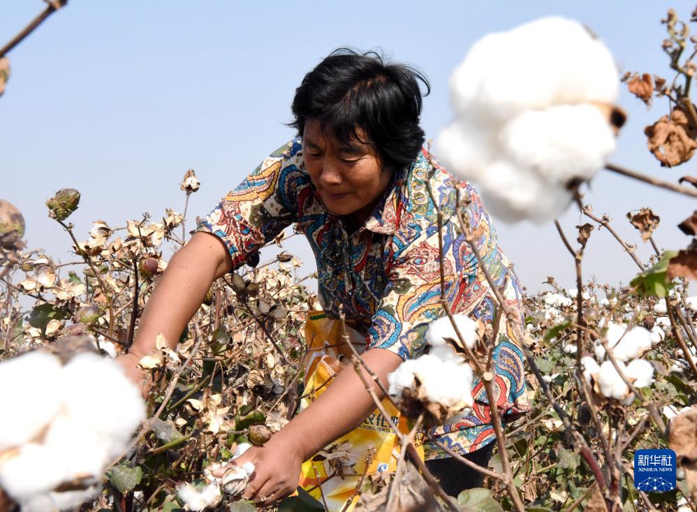 10月24日,在河北省邯鄲市成安縣北鄉義鎮辛莊村棉田內,棉農在采摘棉花。