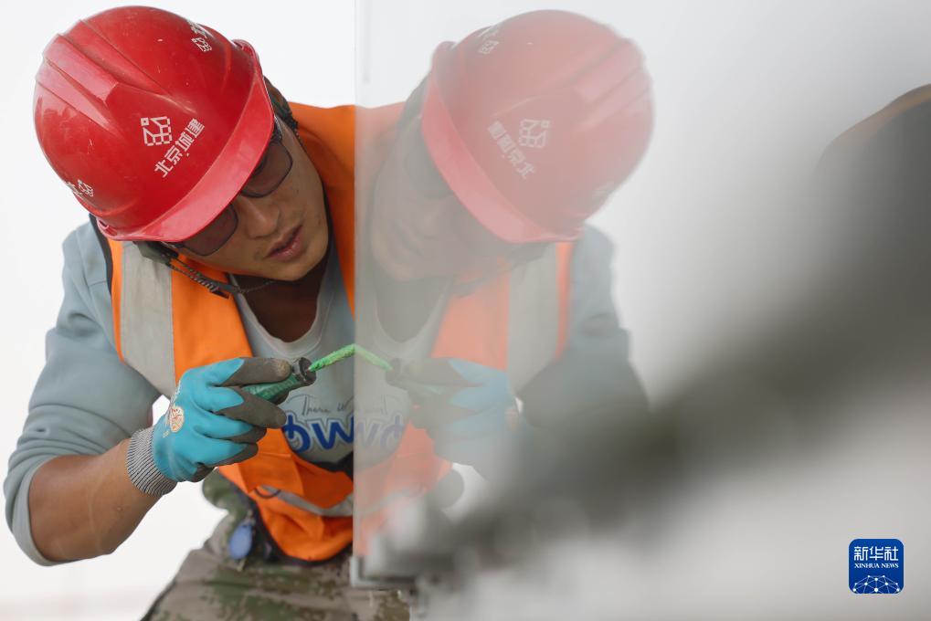 工人在雄安體育中心體育場(chǎng)施工(10月24日攝)。