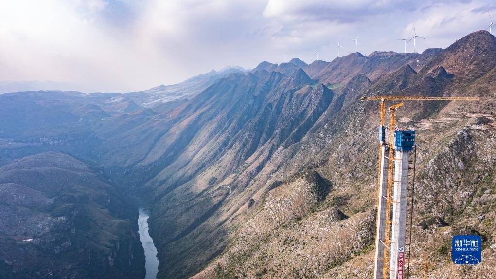 花江峽谷大橋是六安高速公路的控制性工程之一,建成后主橋橋面與谷底的北盤(pán)江距離達625米,將成為世界第一高橋。