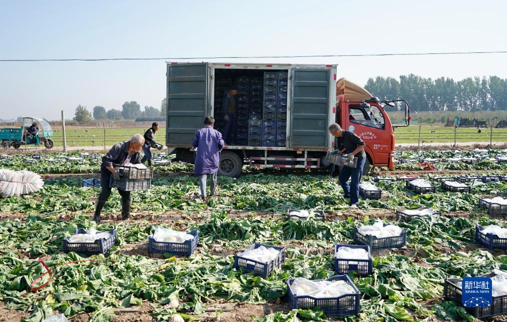 10月25日,辛集市辛集鎮辛洲蔬菜種植基地的工人在搬運蘿卜。該基地種植的蘿卜按訂單銷(xiāo)往日本。