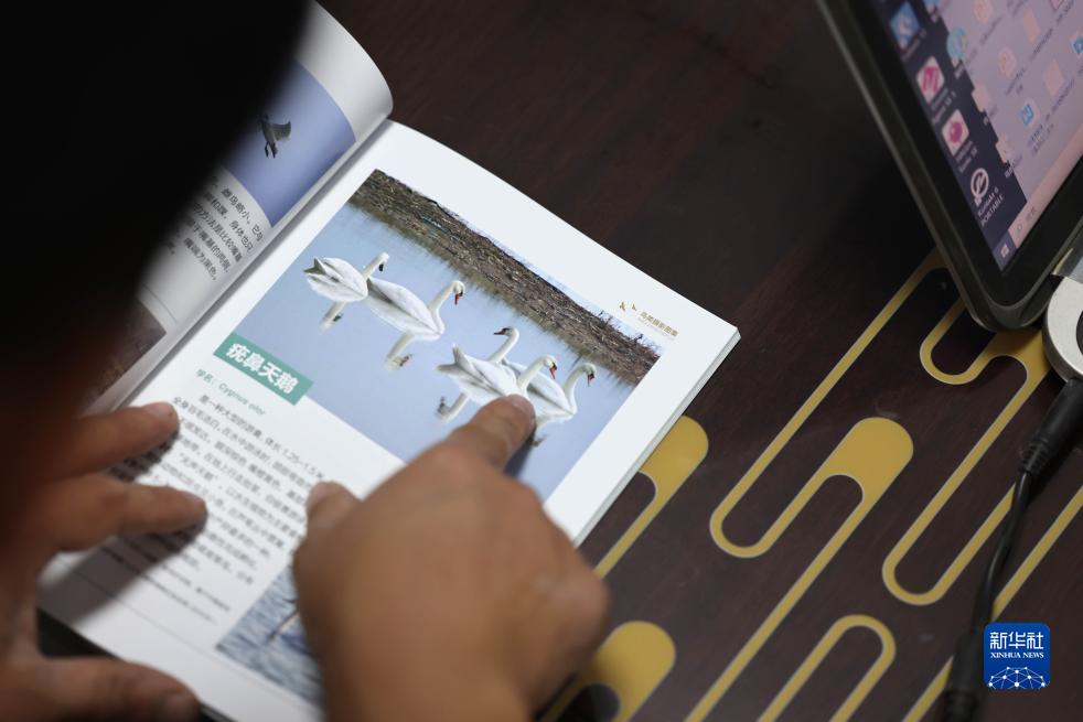 10月24日,韓戰橋在雄安新區安新縣家中翻看鳥(niǎo)類(lèi)畫(huà)冊。