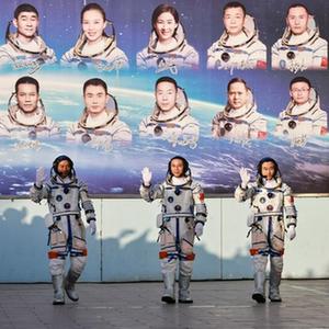10月26日上午,神舟十七號載人飛行任務(wù)航天員乘組出征儀式在酒泉衛星發(fā)射中心問(wèn)天閣圓夢(mèng)園廣場(chǎng)舉行。這是航天員湯洪波(中)、唐勝杰(右)、江新林在出征儀式上。