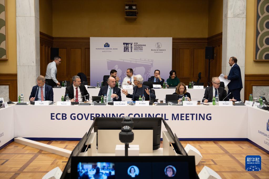 這是10月26日在希臘雅典拍攝的歐洲中央銀行貨幣政策會(huì )議現場(chǎng)。