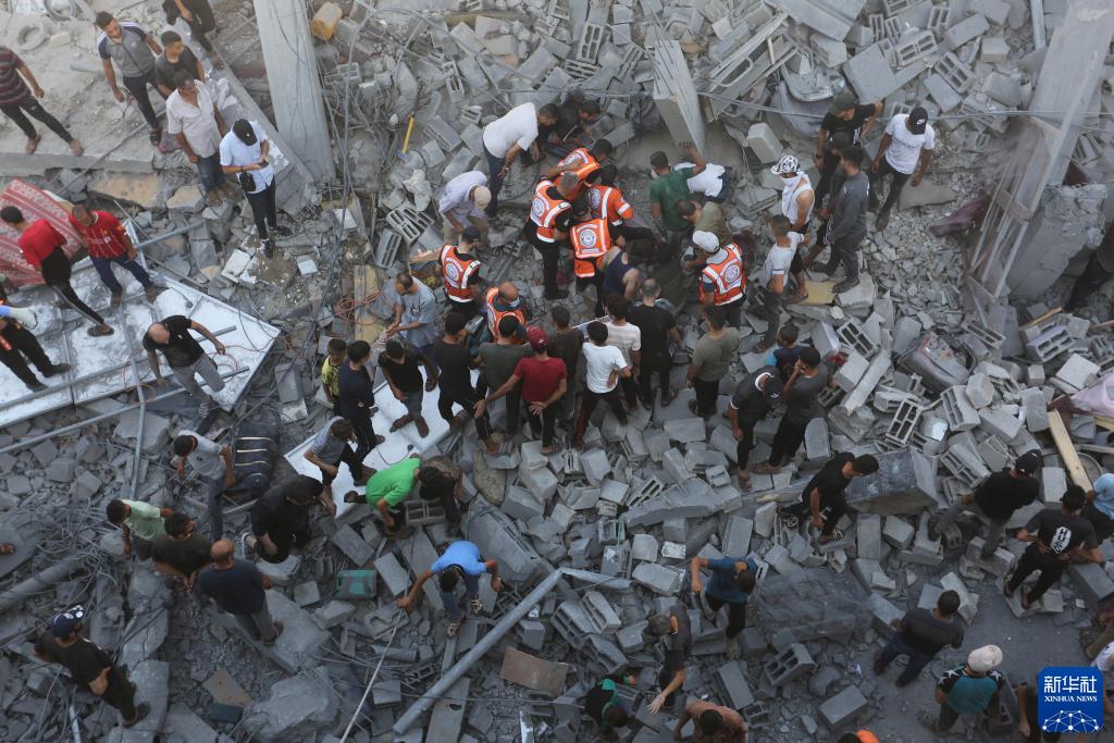 10月26日,人們在加沙地帶南部城市拉法的廢墟中救援。