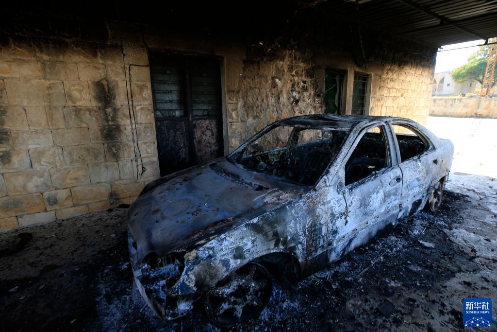 這是10月25日在黎巴嫩扎拉拍攝的一輛被燒毀的汽車(chē)。