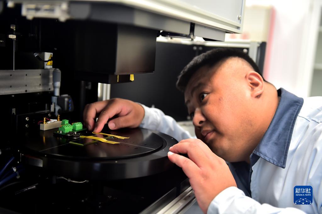 10月27日,技術(shù)人員在位于山東省聊城市陽(yáng)谷縣的波米科技有限公司實(shí)驗室工作。