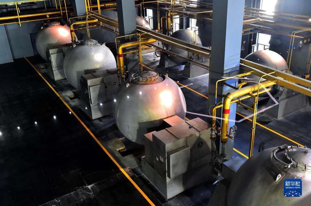 10月27日在山東省聊城市東阿縣東阿阿膠股份有限公司阿膠世界體驗工廠(chǎng)拍攝的新一代煉膠設備。