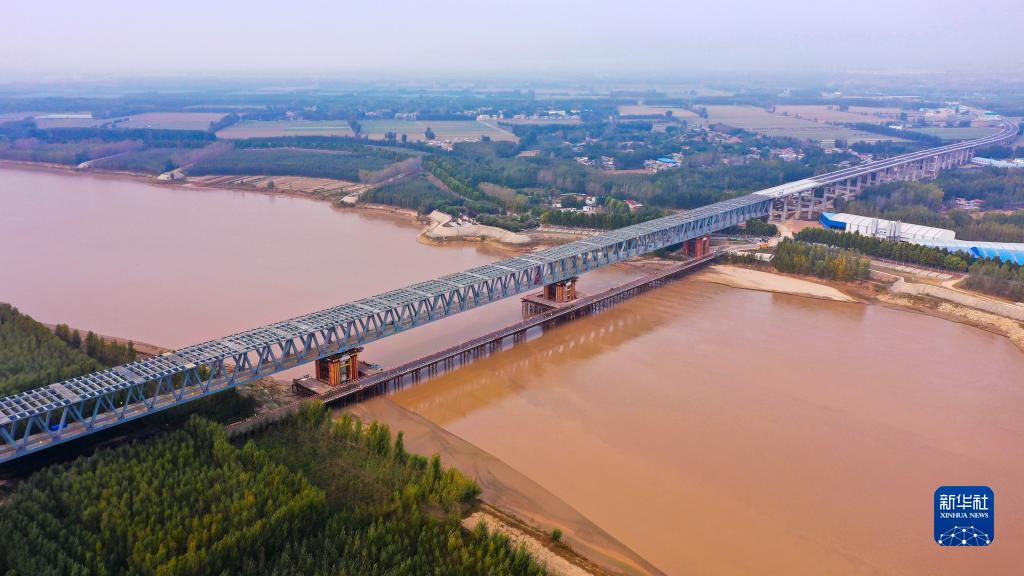 10月28日拍攝的合龍后的聊(城)泰(安)鐵路黃河公鐵橋(無(wú)人機照片)。
