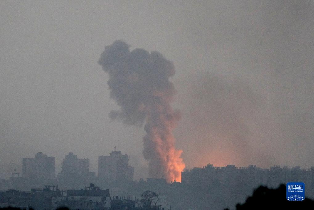 這張10月28日從加沙邊境以色列一側拍攝的照片顯示,加沙地帶北部遭以軍襲擊后升起濃煙。