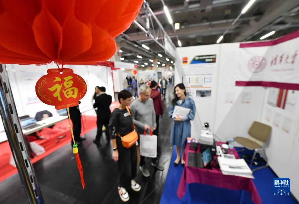 10月28日,參觀(guān)者在德國紐倫堡國際發(fā)明展清華大學(xué)展區參觀(guān)。