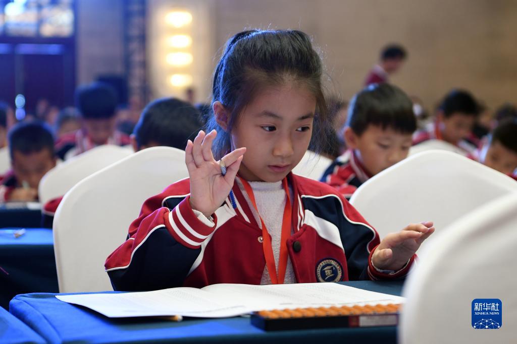 10月29日,小選手在活動(dòng)現場(chǎng)進(jìn)行珠心算成果展演。