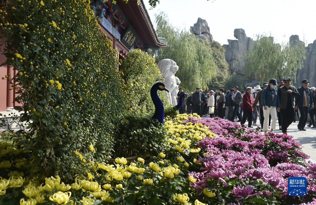 游人在開(kāi)封市開(kāi)封府景區游園賞花(10月23日攝)。