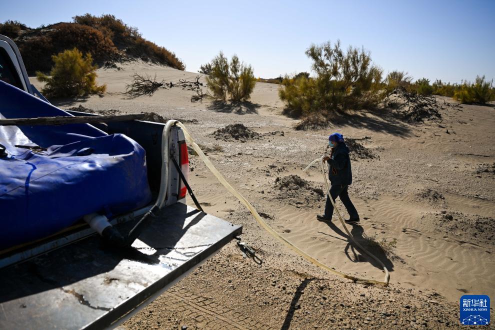 在黑城遺址附近,還保留著(zhù)蘇和與德力格2004年扎根沙漠時(shí)建的三間平房,如今這里已是一片綠蔭?!吧衬薰钡募胰藗兘舆^(guò)蘇和老人的擔子,在人跡罕至的沙漠深處譜寫(xiě)生命與綠色的贊歌。