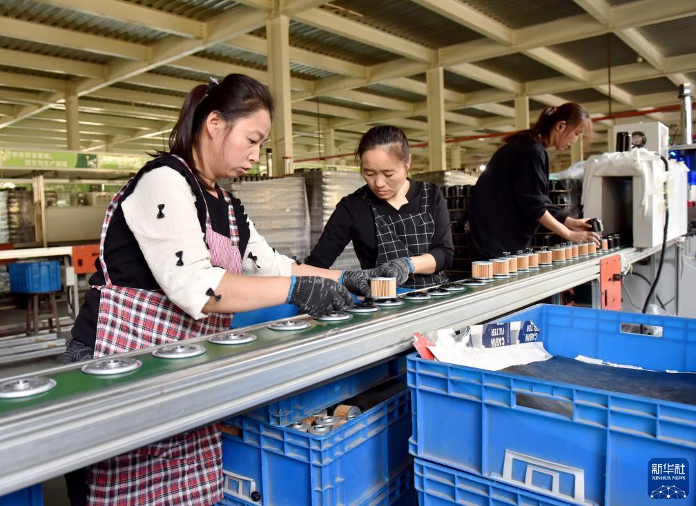 10月30日,威縣一家汽車(chē)濾芯生產(chǎn)企業(yè)工人在生產(chǎn)線(xiàn)上組裝濾芯。