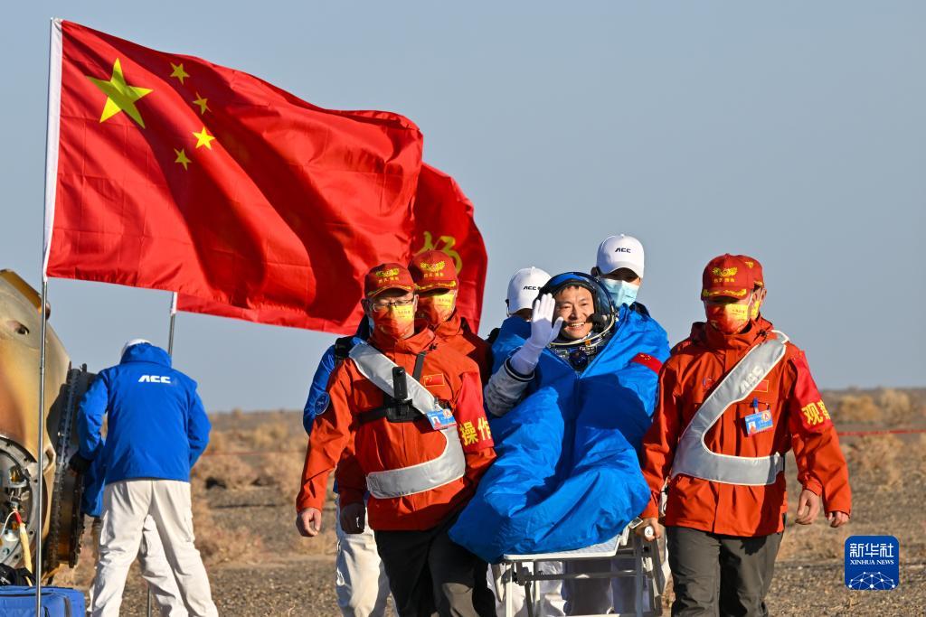 10月31日,神舟十六號載人飛船返回艙在東風(fēng)著(zhù)陸場(chǎng)成功著(zhù)陸。這是航天員桂海潮安全順利出艙。