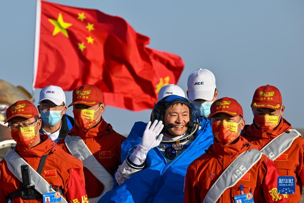 10月31日,神舟十六號載人飛船返回艙在東風(fēng)著(zhù)陸場(chǎng)成功著(zhù)陸。這是航天員桂海潮安全順利出艙。