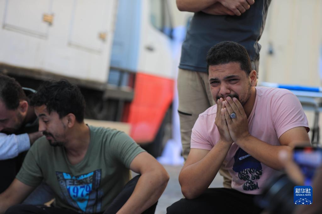 10月31日,在加沙地帶中部城市代爾拜拉赫,人們在失去親友后痛哭。