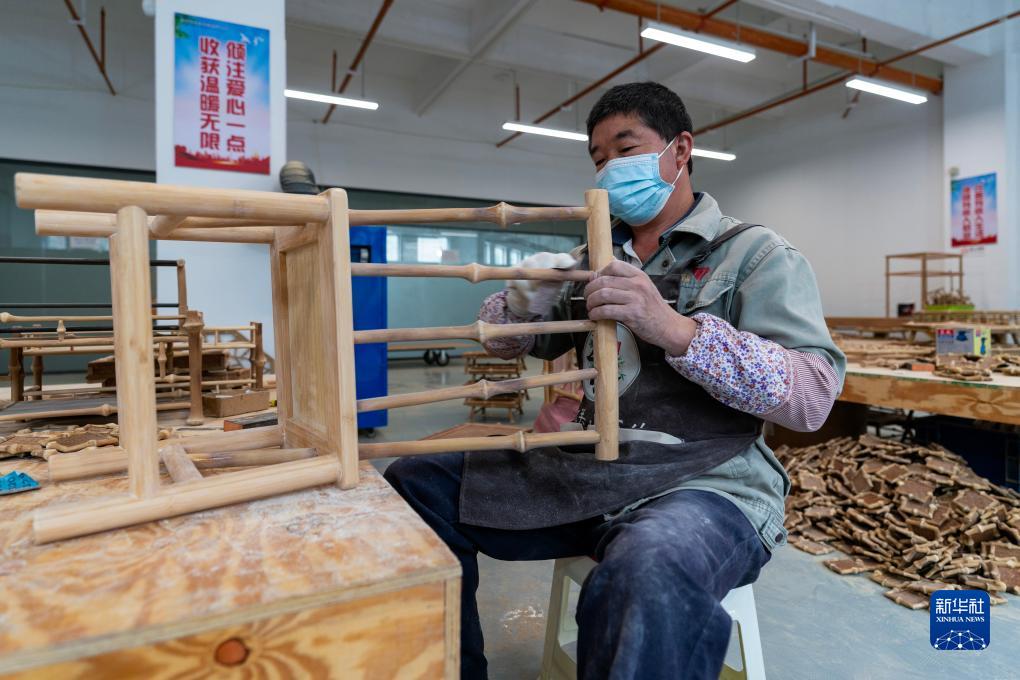 10月31日,昭通市大關(guān)縣一家筇竹家具企業(yè)員工在打磨家具。