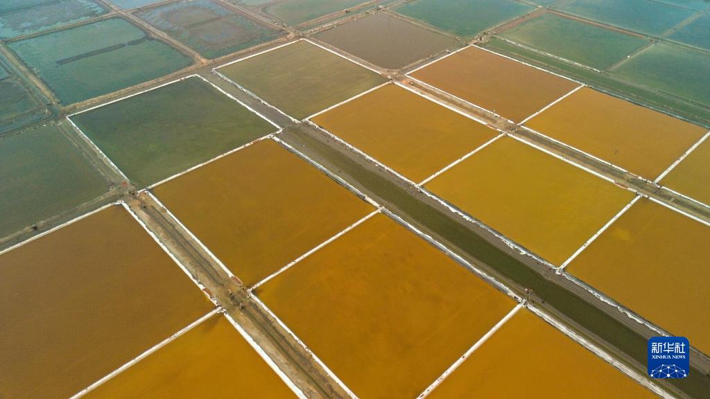 深秋時(shí)節,遼寧省營(yíng)口市老邊區的鹽田色彩斑斕,宛如大地的調色板,美不勝收。