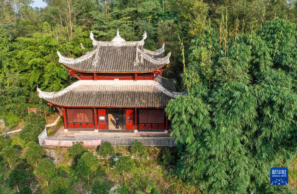 這是10月31日在重慶市大足區寶頂鎮香山社區拍攝的佛祖巖摩崖造像文物保護點(diǎn)景象(無(wú)人機照片)。