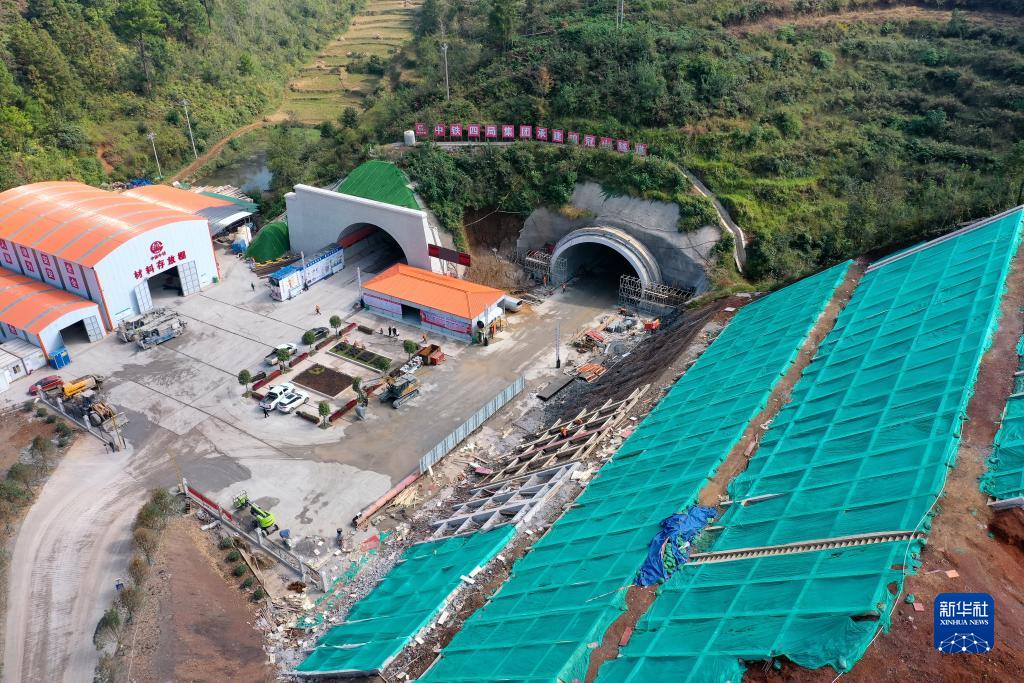11月1日,正在緊張施工中的雞冠山隧道(無(wú)人機照片)。