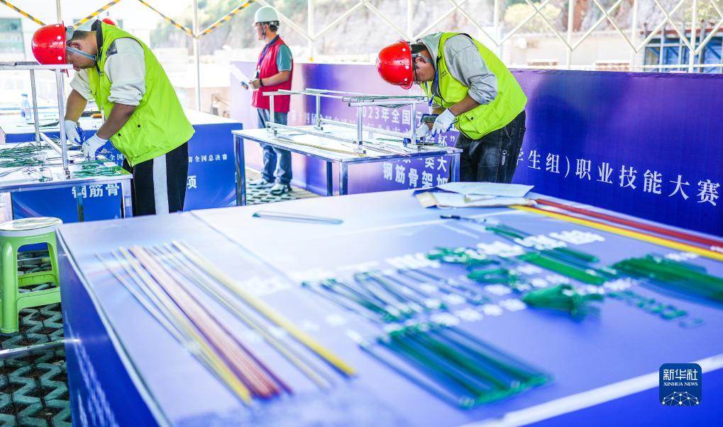 11月1日,選手參加鋼筋骨架加工項目比賽。