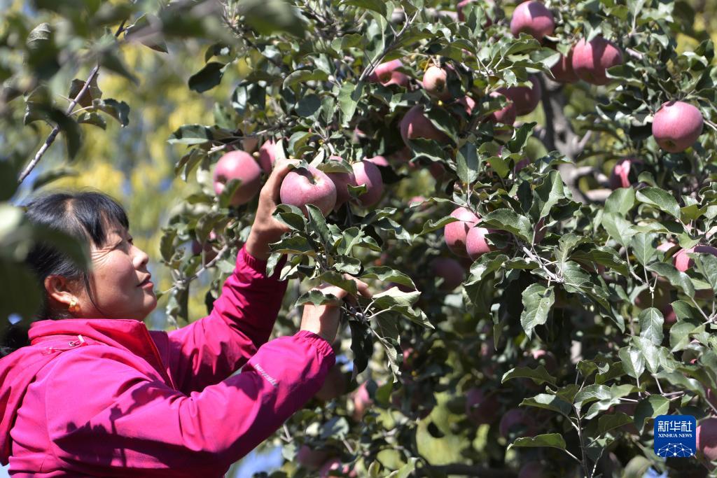 10月31日,果農在甘肅省永靖縣峴塬鎮劉家村果園里采摘蘋(píng)果。