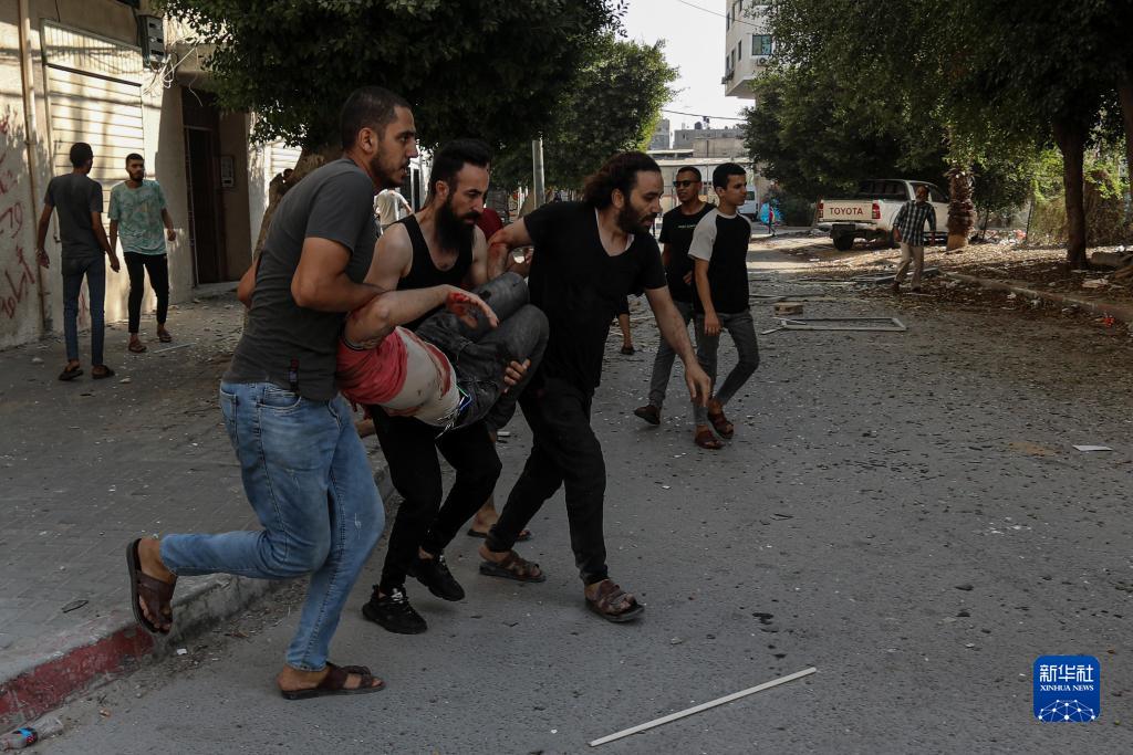 11月2日,人們在加沙城遭以軍空襲后轉移傷者。