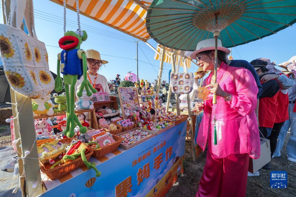 11月2日,游客在豐收市集觀(guān)看特色農文旅產(chǎn)品。