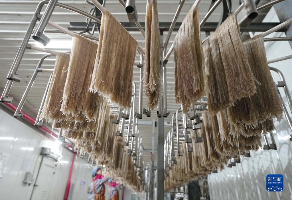 11月4日,工人在河北省盧龍縣一家甘薯深加工企業(yè)的粉條生產(chǎn)車(chē)間工作。