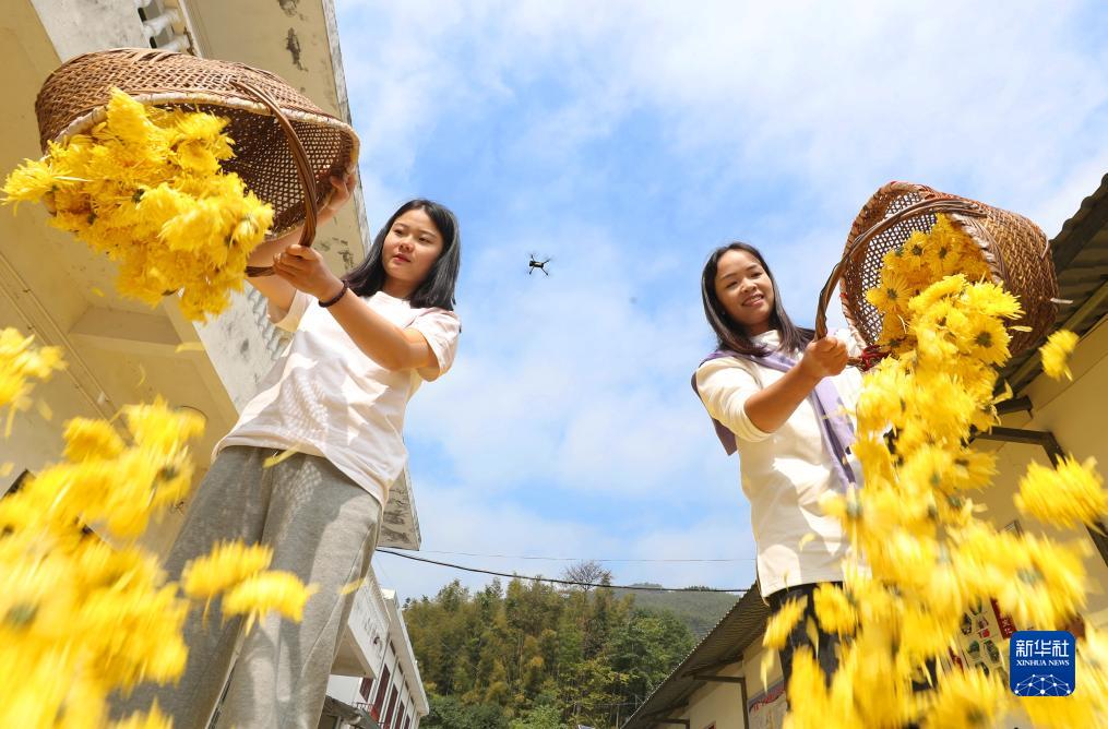 近日,湖南省衡陽(yáng)市南岳區壽岳鄉岳林村皇菊種植基地種植的高山皇菊進(jìn)入收獲期,當地村民搶抓晴好天氣采摘、加工。近年來(lái),岳林村依托當地高山林地,大力發(fā)展觀(guān)賞性強、經(jīng)濟價(jià)值高的高山皇菊種植,推動(dòng)當地農旅融合發(fā)展,帶動(dòng)農民增收。