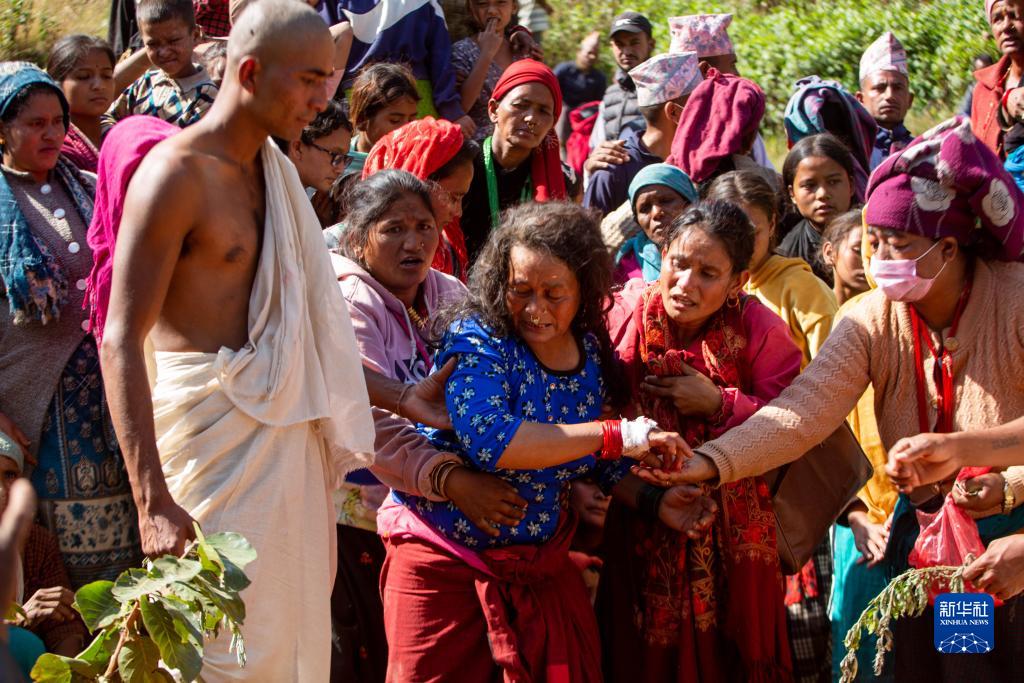 11月5日,在尼泊爾魯古姆西區,人們因親人的離去悲痛不已。