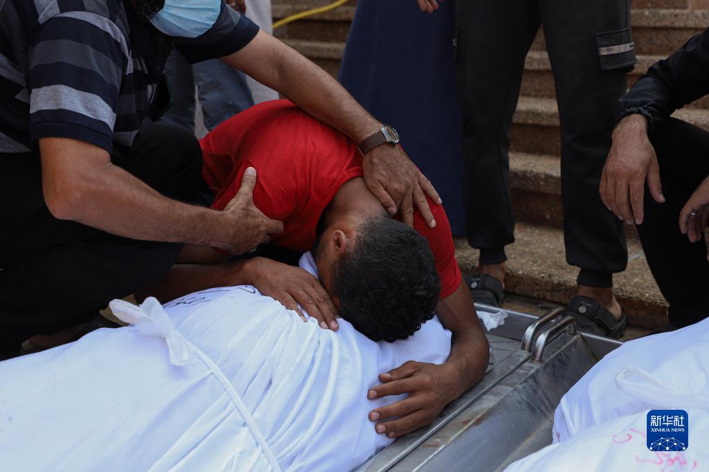 11月5日,在加沙地帶南部城市汗尤尼斯,人們悼念在沖突中去世的親友。