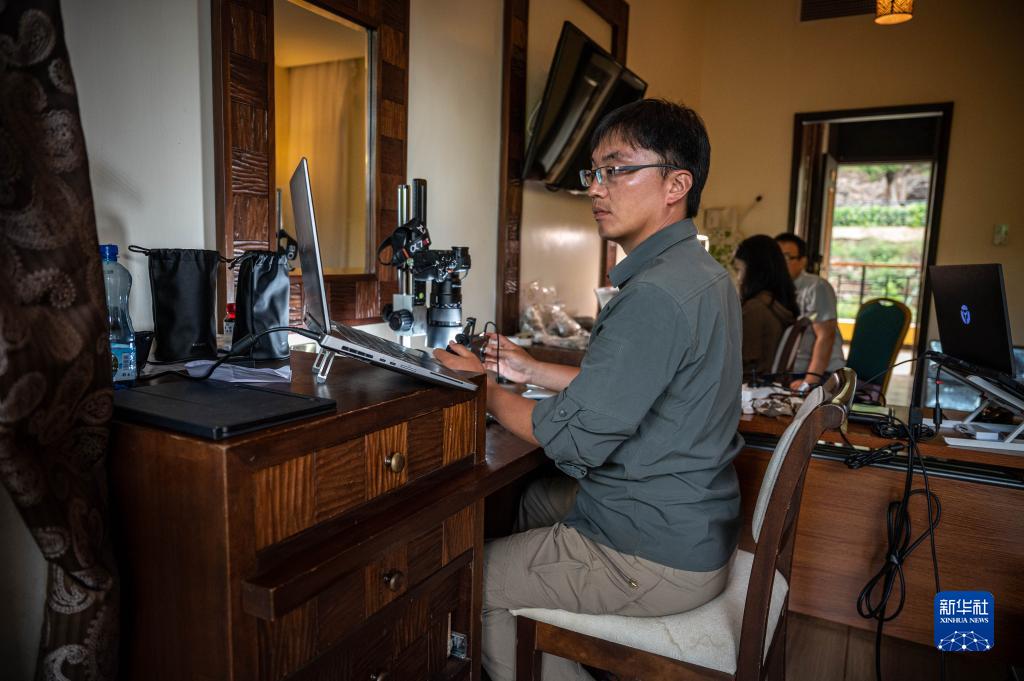 11月3日,中肯聯(lián)合考古隊中方現場(chǎng)負責人趙清坡在位于肯尼亞巴林戈郡馬里加特鎮的臨時(shí)駐地內工作。