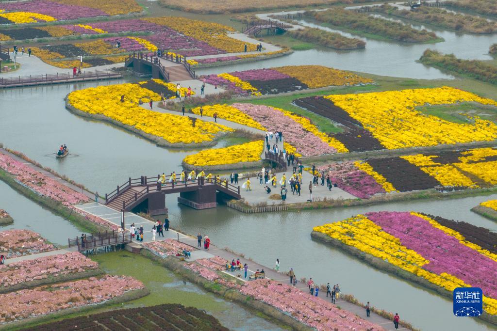 11月4日,游客在江蘇省興化市千垛景區賞菊游玩(無(wú)人機照片)。
