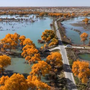 眼下正值新疆塔里木河流域胡楊林的最佳觀(guān)賞時(shí)期,各地游客紛紛來(lái)此游覽觀(guān)光。新疆沿塔里木河流域分布著(zhù)約1500萬(wàn)畝胡楊林,是世界面積最大的胡楊林區。